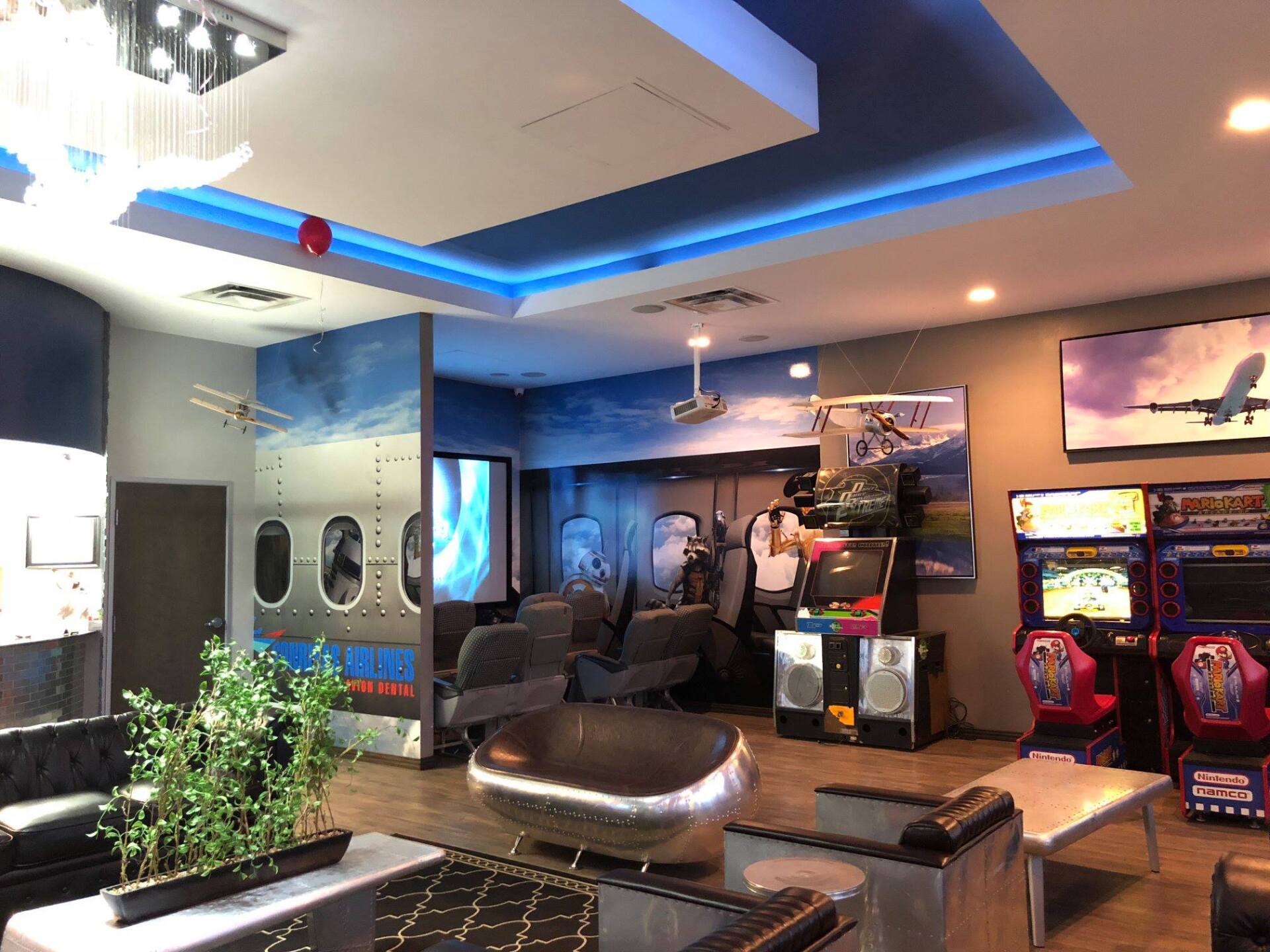 Prepare for takeoff with our virtual tour at Avion Dental, a one-of-a-kind dentist in Houston, TX. As soon as you step into our aviation-themed office, you will be welcomed by the sounds of laughter emanating from our full arcade, and the sight of popular children's movies playing on our HD TV.